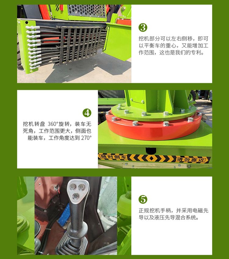 連接復合動作一拖二操作手柄,簡介易操作由于它具有共同的結構,前端是裝載設備,后端為發掘設備。在施工時,操作手只需求翻滾一下座椅,就可以結束從裝載機到發掘機的改動。鏟挖一體機首要用于城市和村莊的公路制作及維護、電纜鋪設、電力和機場工程、市政制作、農田水利制作、村莊住宅制作、開山取石以及各種小型建筑隊所從事的各種建筑施工工程。“兩頭忙”歸于小型多功能工程機械的一種,一般在大工程結束后的小工程中運用。它可配多種作業設備及輔具,進行發掘、鏟裝、路面破碎、平整場所、開挖水溝、鋪設管道等多種作業。